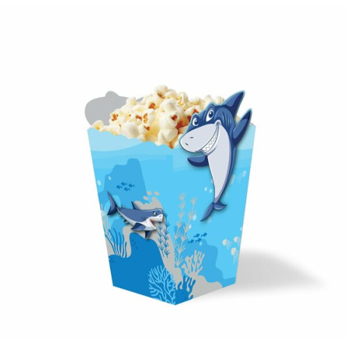 ## **Eco Köpek Balığı Temalı 8'li Mısır Kutusu - Okyanusun Eğlencesi İkramlıklarınıza Taşıyor**