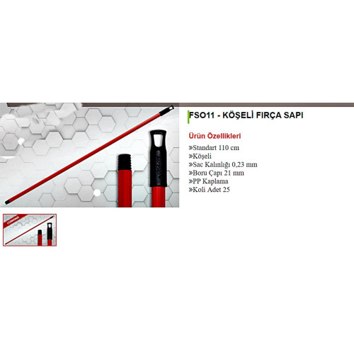 Fırça, çekçek ve mop başlıklarıyla uyumlu, ince profilli ve dayanıklı metalden üretilmiş 120 cm uzunluğunda kendinden vidalı (dişli) kırmızı temizlik sapı. Standart dişli tüm temizlik aparatlarına kolayca takılır.