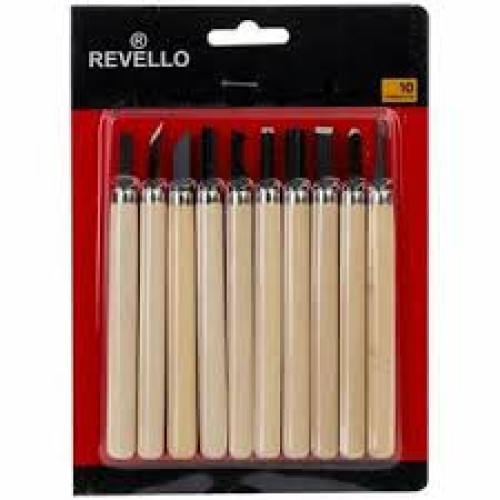 Heykel, rölyef ve ahşap yontma sanatı (linol baskı) ile ilgilenen hobi severler ve öğrenciler için farklı uç tiplerinden oluşan 10 parça Revello ahşap oyma bıçağı (ıskarpela) seti. Ergonomik ahşap sapları ince işçilik yaparken elinizi yormaz, uçları keskin çelikten üretilmiştir.